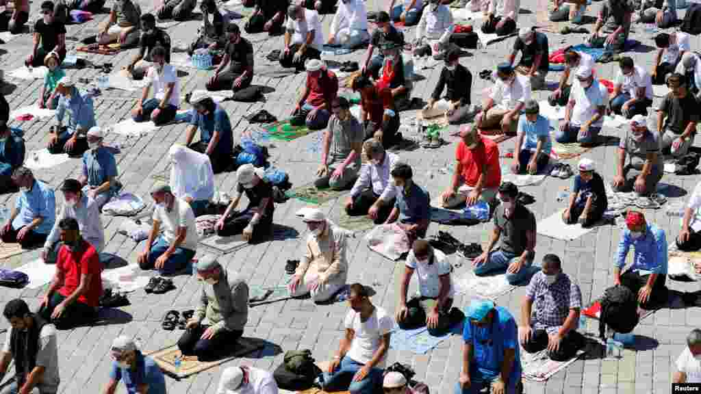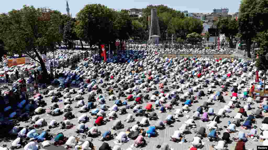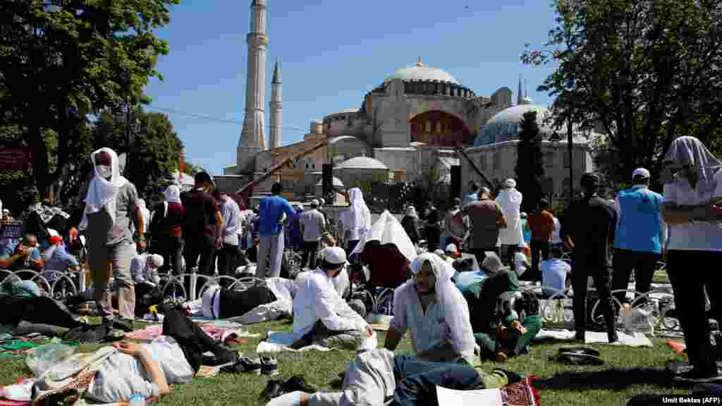 U Aji Sofiji u Istanbulu turski predsjednik Recep Tayyip Erdogan (Redžep Tajip Erdoan) danas je (24. juli) učio Kur'an, a zatim je sa četiri minareta upućen poziv na molitvu - džumu. Više hiljada vjernika okupilo se na molitvi u Aji Sofiji, prvoj od 1934., kada je zdanje pretvoreno u muzej.