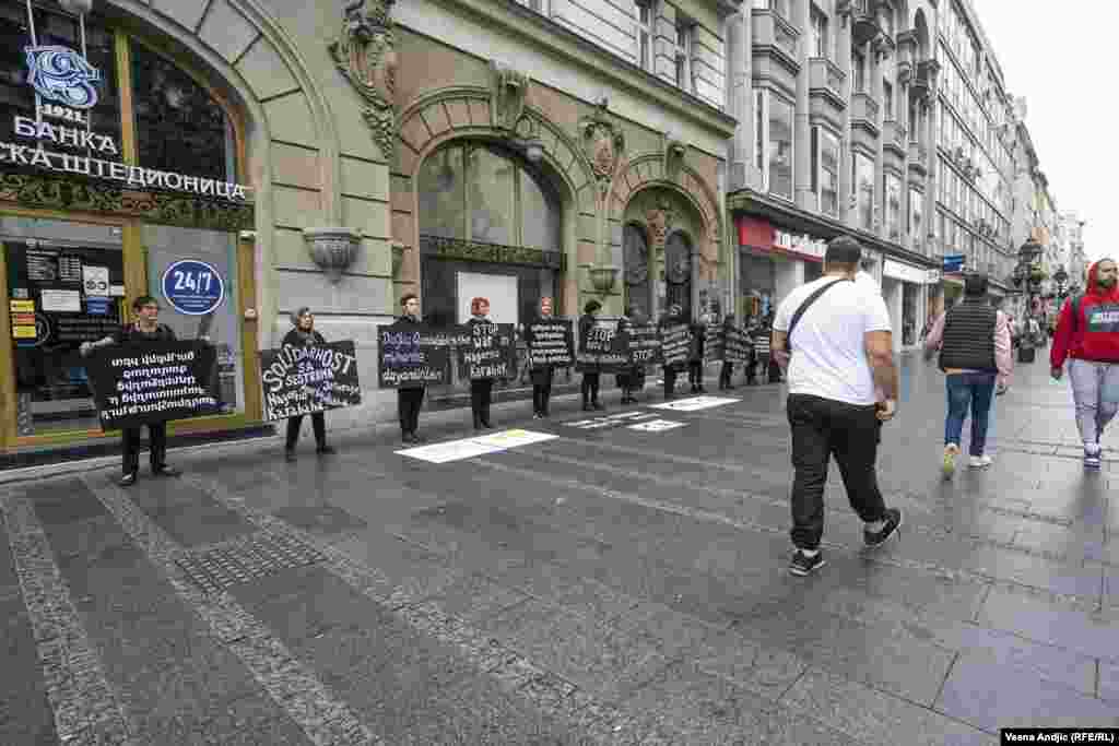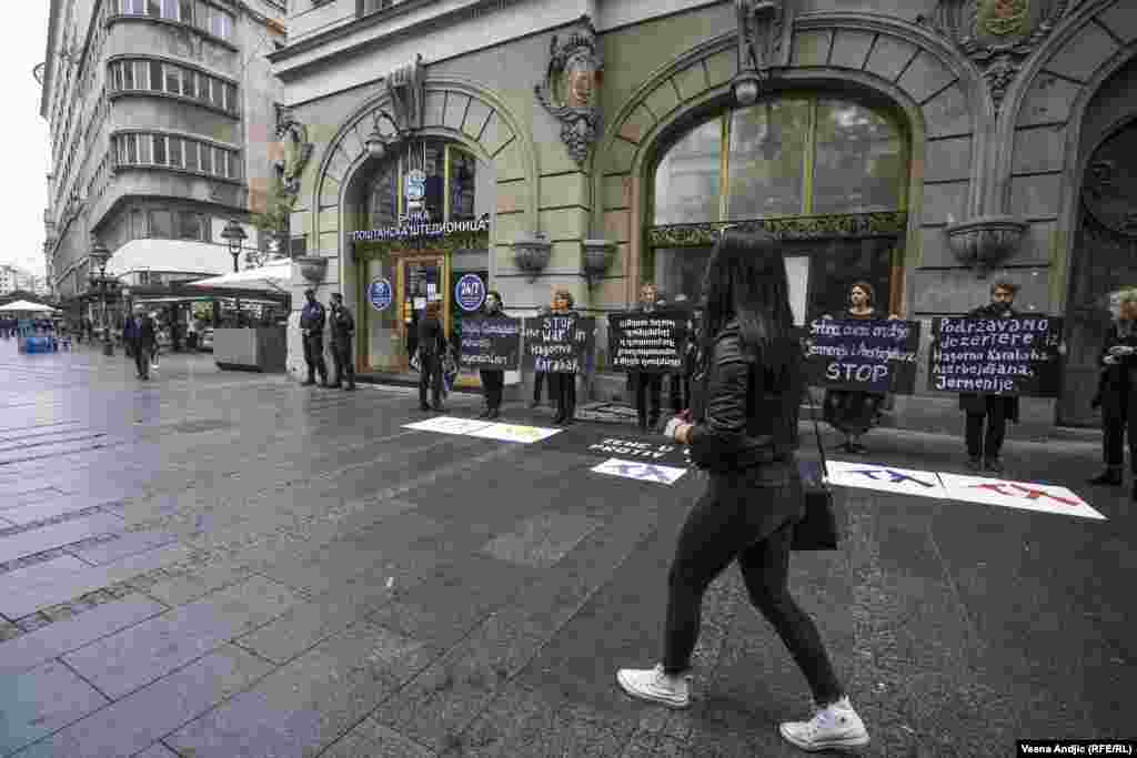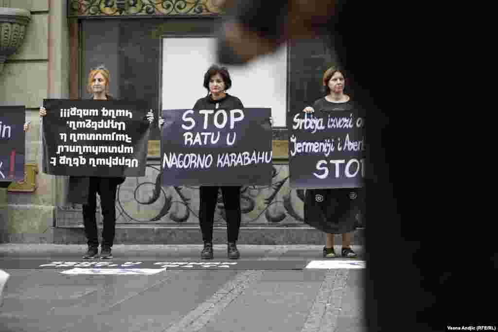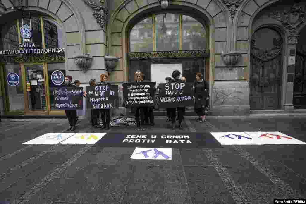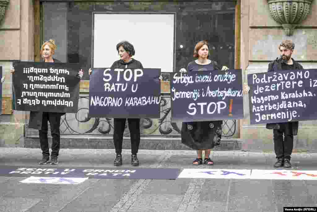 Nevladina, mirovna organizacija iz Srbije "Žene u crnom" održala je 7. oktobra u centru Beograda antiratni protest "Stop ratu u Nagorno-Karabahu". Aktivistkinje i aktivisti su stajali u tišini, obučeni u crninu, a njihov zahtev je hitna obustava borbenih dejstava i početak pregovora. "Žene u crnom" su istakle i da oštro osuđuju, kako su navele, "sramotni i kriminalni izvoz oružja (Jermeniji i Azerbejdžanu) proizvedenog u Srbiji, od čega najviše profitiraju izvoznici oružja". "Zahtevamo da se odmah obustavi izvoz oružja u Jermeniju i Azerbejdžan i da izvoznici oružja budu sankcionisani", navele su "Žene u crnom".