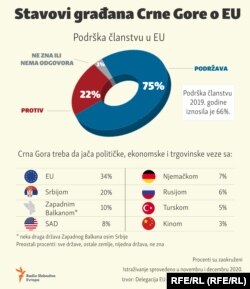„Kada bi se referendum o članstvu Crne Gore u EU održao ove sedmice, 79,6 odsto građana glasalo bi za to da država pristupi Uniji, dok bi 13,1 odsto bilo protiv“, navodi se u istraživanju.