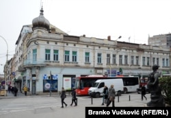 Pešačka zona u centru Kragujevca u kojoj se nalaze brojna stara zdanja. Neke od zgrada sagrađene su pre više od sto godina Fotografija:Branko Vučković (RFE/RL)