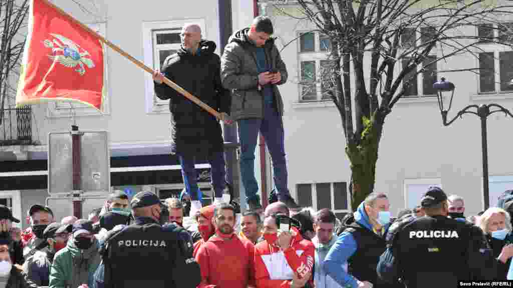 Jake policijske snage obezbjeđuju zgradu lokalnog parlamenta na Cetinju 25. marta u kojoj se održava sjednica Skupštine Crne Gore na čijem dnevnom redu je premijerski sat, prvi od promjene vlasti u Crnoj Gori. Prvo proljećno zasjedanje Skupštine Crne Gore po pravilu se održava na Cetinju.