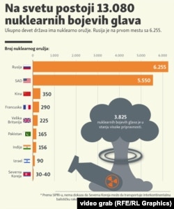 "Čini se da se ukupni broj bojnih glava u globalnim vojnim zalihama sada povećava, zabrinjavajući znak da je trend opadanja koji karakteriše globalne nuklearne arsenale od kraja Hladnog rata u zastoju", rekao je Hans Kristensen, stručnjak za nuklearno oružje u SIPRI-ju.