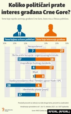 Dok se građani suočavaju sa serijom poskupljenja a brojni zakoni čekaju na usvajanje u crnogorskom parlamentu, političari se bave temama koje nisu u interesu građana poput raspodjele funkcija, kaže građanska aktivistkinja Dina Bajramspahić za Radio Slobodna Evropa (RSE).