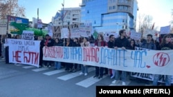 Novosadski srednjoškolci su blokirali raskrsnicu Bulevara oslobodjenja i Futoške ulice u Novom Sadu.