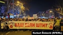 Više stotina zdravstvenih radnika pod sloganom “Vaš beli štit” se priključilo demonstrantima na Mostu slobode.