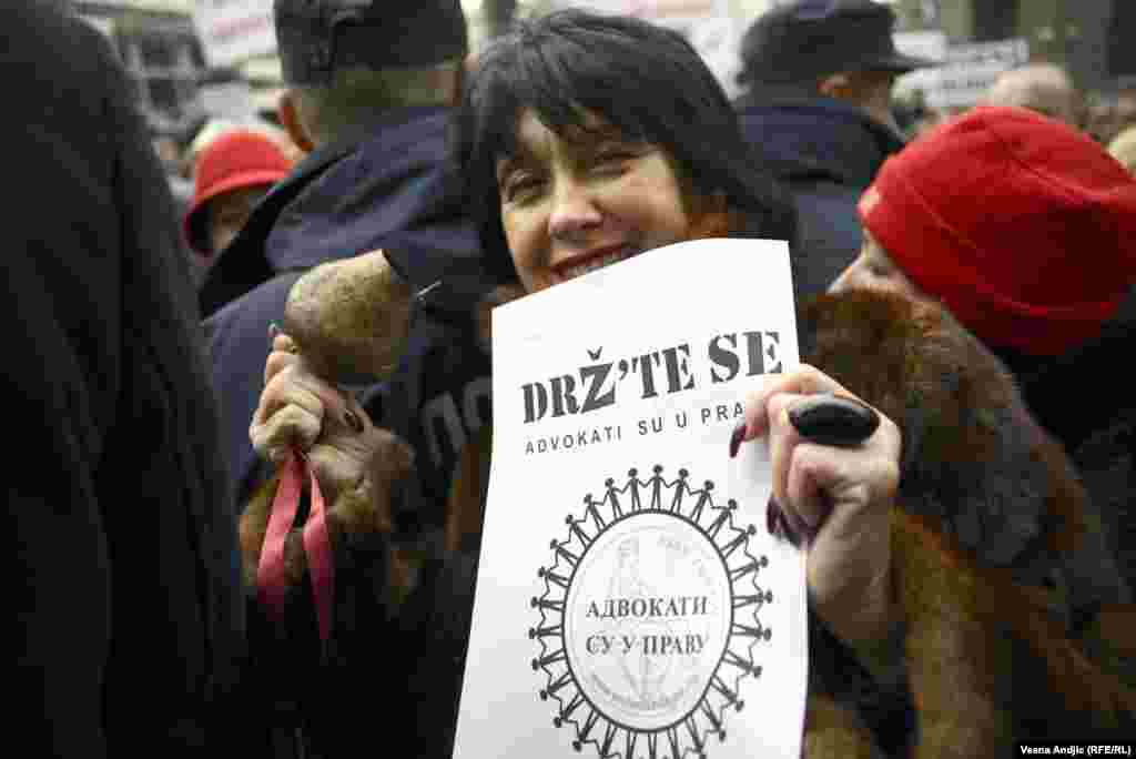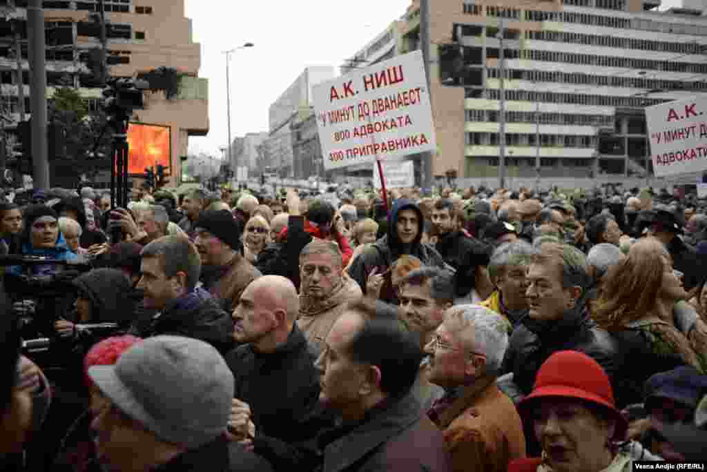 Advokatska komora Srbije obavestila je evropske institucije o razlozima tromesečnog štrajka i uskoro očekuje reakciju iz Brisela, saopšteno je na protestu u Beogradu. Par hiljada advokata okupilo se ispred zgrade Vlade Srbije tražeći da im država vrati poslove koji su nedavno dodeljeni javnim beležnicima. 27.11.2014.