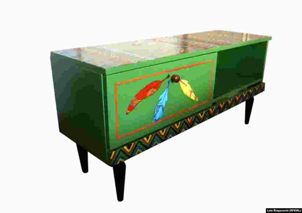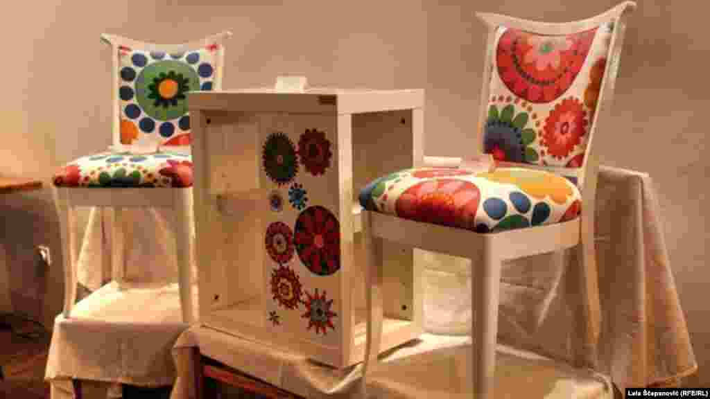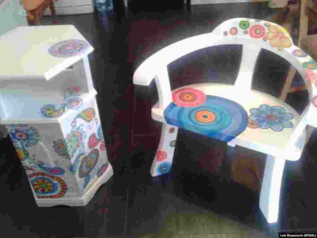Tri nikšićka umjetnika umjesto slikarskog platna slikaju na drvetu i daju novi život starom namještaju. Atelje "Egziperi" čine slikari, grafičari, dizajneri i muzičari - zaljubljenici u umjetnost koji žele kreativnost da pretoče u biznis. RSE foto / Lela Šćepanović
