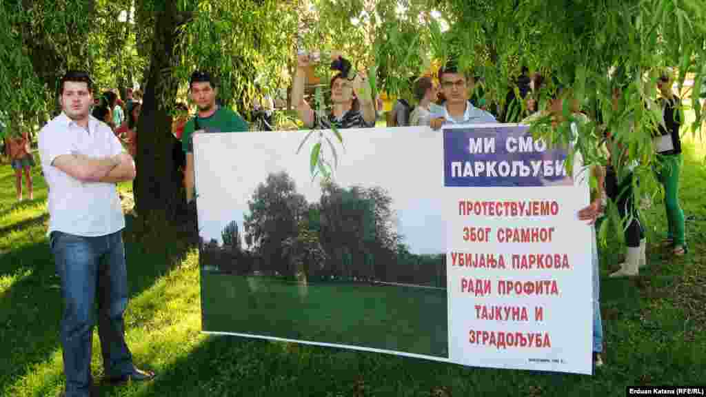 Nekoliko stotina Banjalučana mirno je protestovalo u parku koji je ovih dana postao gradilište. Foto: RSE / Erduan Katana, 30. maj 2012.