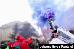 "Povećajte plaće i mirovine!", pisalo je na jednom transparentu koji je visoko držao prosvjednik.