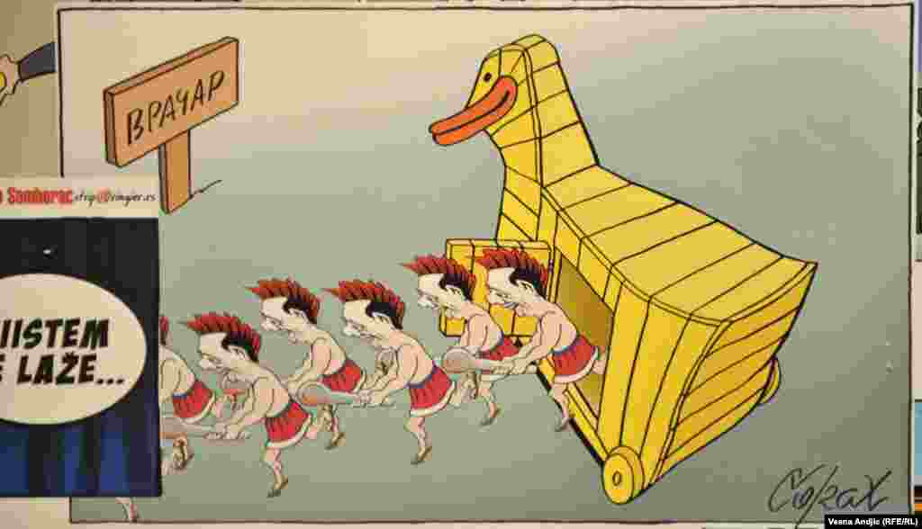 Upinjući se da dokažu da u Srbiji nema cenzure, ili pre da pokažu koliko njihov šef ne može da podnese kritiku, članovi Srpske napredne stranke (SNS) mandatara za sastav nove vlade Srbije, Aleksandra Vučića, priredili su izložbu "Necenzurisane laži". Među 2.500 primeraka naslovnih strana, vesti, izveštaja, komentara, analiza, karikatura u medijima iz poslednje dve godine, koji se kritički osvrću na vlast SNS-a ali pre svega mandatara, su i tekstovi i karikature sa internet stranice Radija Slobodna Evropa.