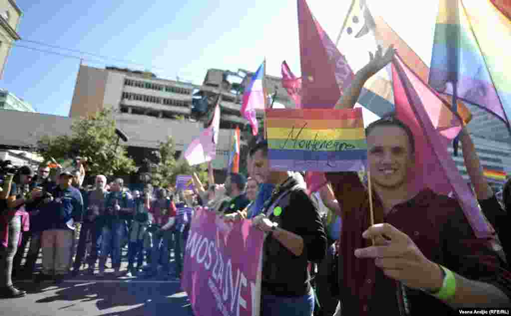 Nakon govora organizatora i predstavnika stranih ambasada ispred Skupštine grada, završena je druga Parada ponosa u Beogradu. Povorka je, u policijskoj pratnji prošetala od Vlade Srbije, Ulicom kneza Miloša do platoa ispred Skupštine grada. RSE/FOTO: Vesna Anđić, Ognjen Zorić, Zoran Glavonjić