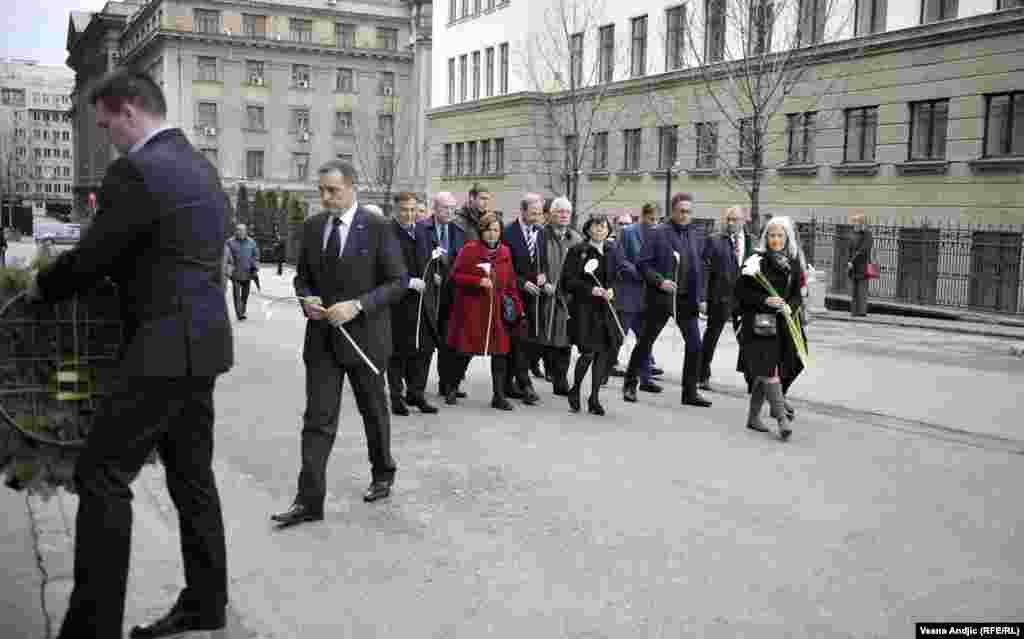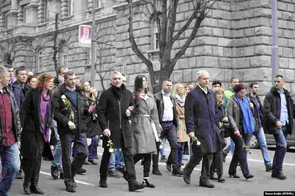 "Šetnja za Zorana". U prvom redu, između ostalih, Čedomir Jovanović i Boris Tadić.