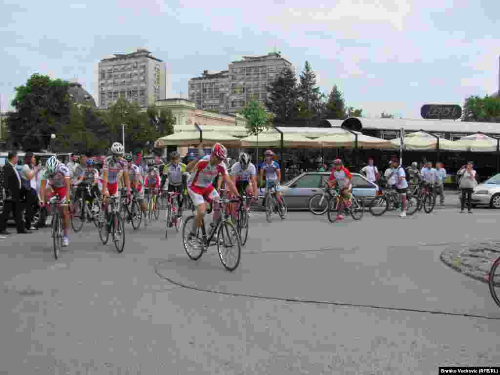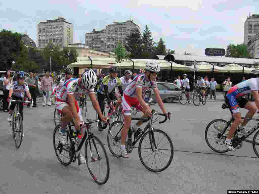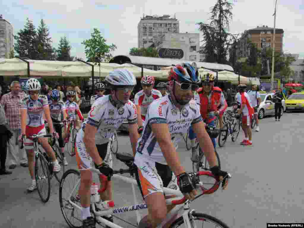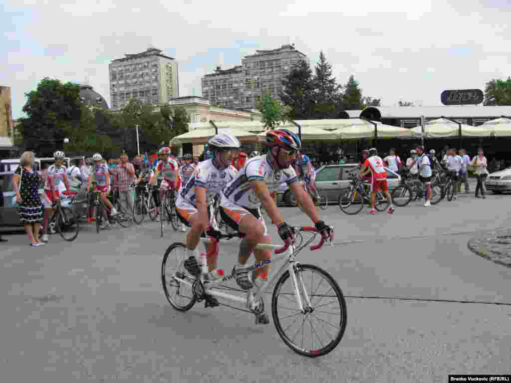 Iz Kragujevca je startovao 11. Tandem - bicilistički maraton do Mostara, tradicionalna sportska manifestacija, ustanovljena 2004. godine, u čast obnavljanja Starog mosta na Neretvi i obnavljanja pobratimstava između ova dva grada. 23.7.2014. RSE foto / Branko Vučković