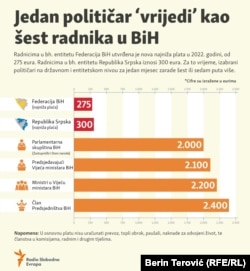 Ako se na osnovnu plaću dodaju i naknade i paušali ona iznosi i do šest hiljada maraka (oko tri hiljade eura), što bosanskohercegovačke parlamentarce stavlja u red najplaćenijih u regiji.