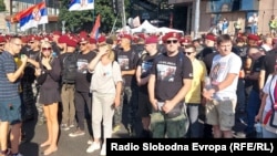 Među okupljenima na protestu nalaze se i ratni veterani 63. Padobranske brigade, javljaju reporteri RSE.