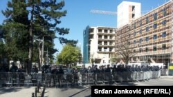 Taj dio grada obezbjeđuju brojni policajci pod punom opremom. Osim učesnika i policije grad izgleda skoro prazan a policija rastjeruje malobrojen prolaznike i znatiželjnike koji se zaustave kod policijskog kordona.