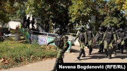 Može se reći da se policijski kordoni "jure" sa učesnicima studentskog skupa koji pokušavaju da uđu na vojnu paradu, javlja reporterka RSE.