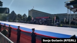 Na plato ispred Palate "Srbija" prethodno je izneta 300 metara duga zastava.