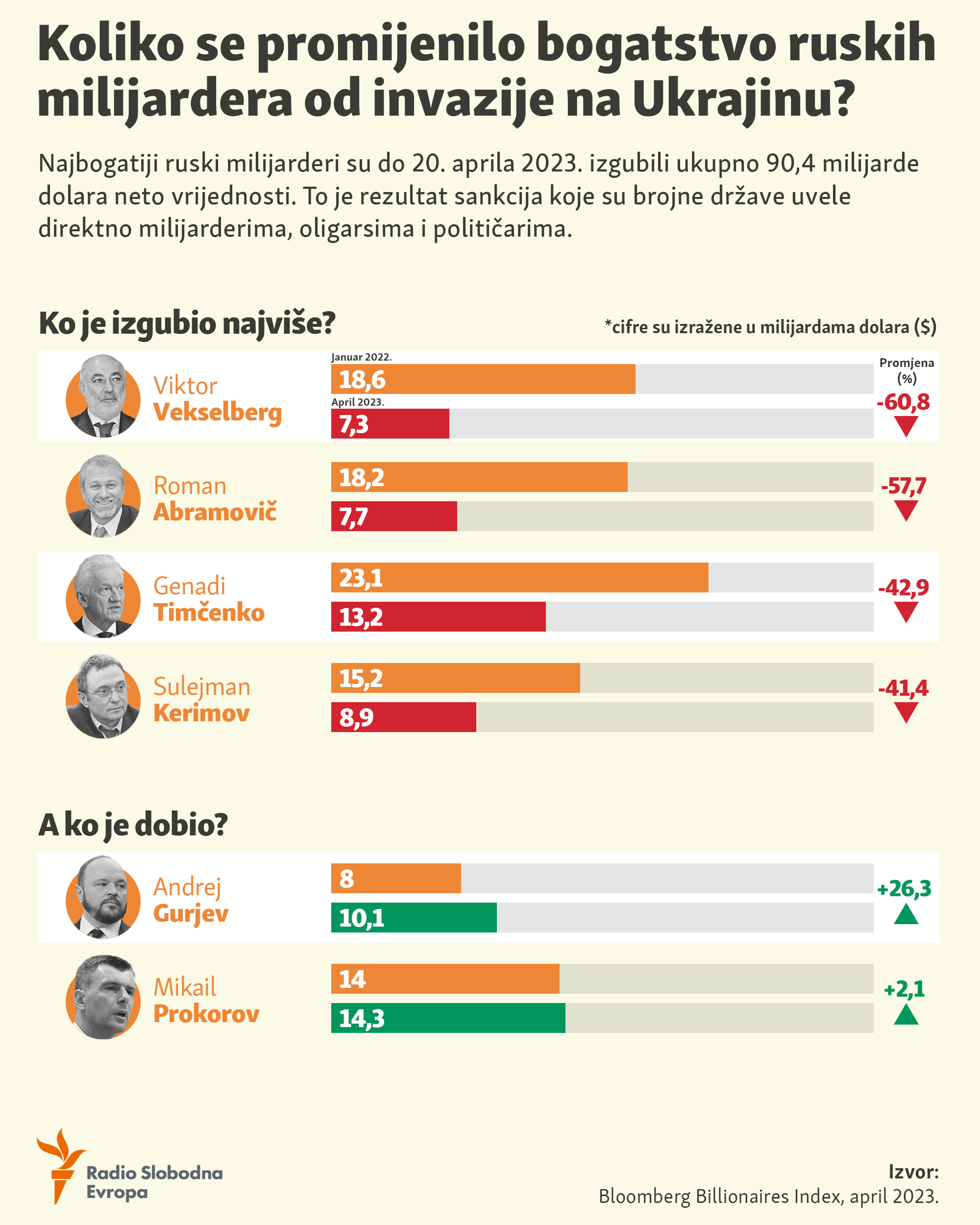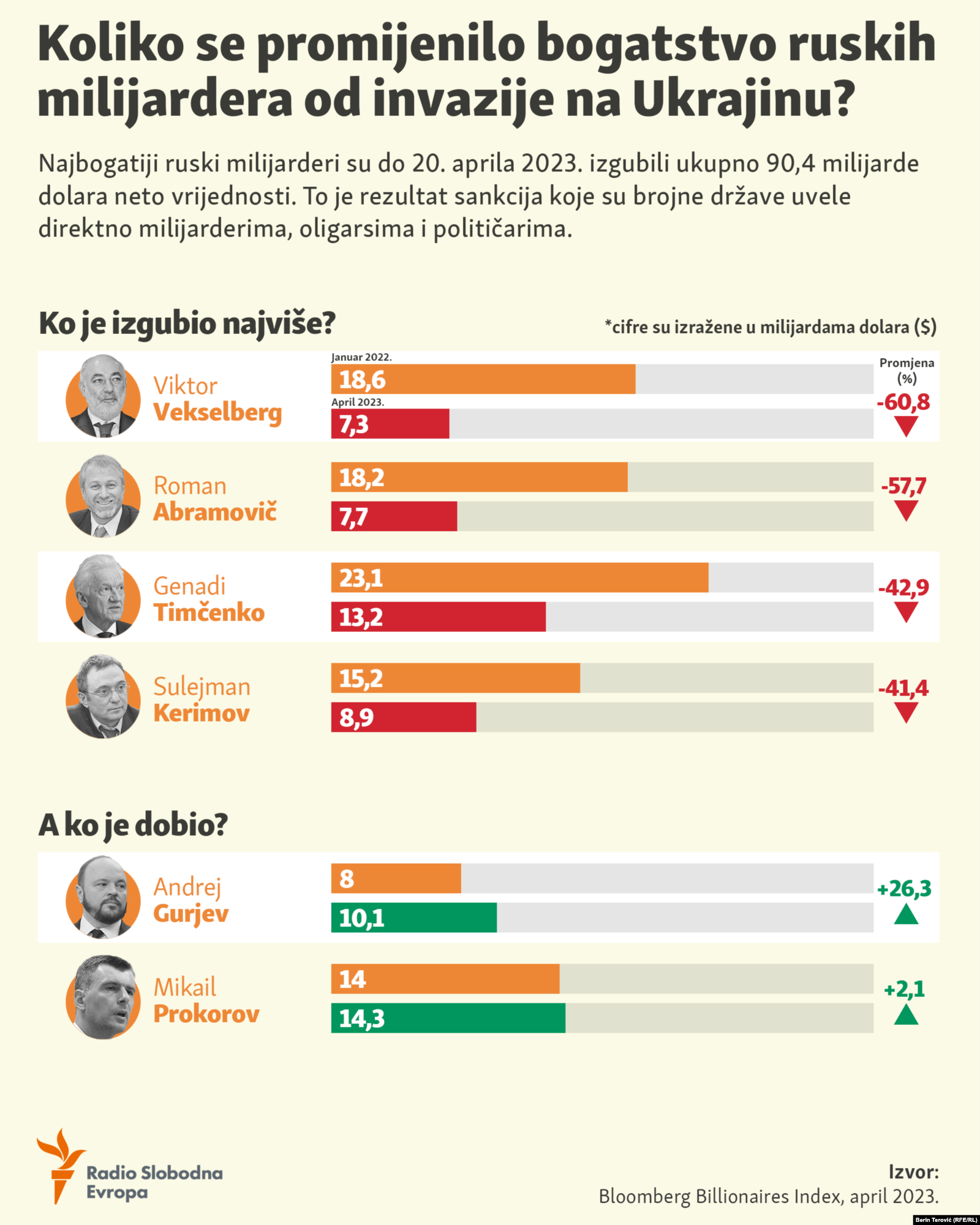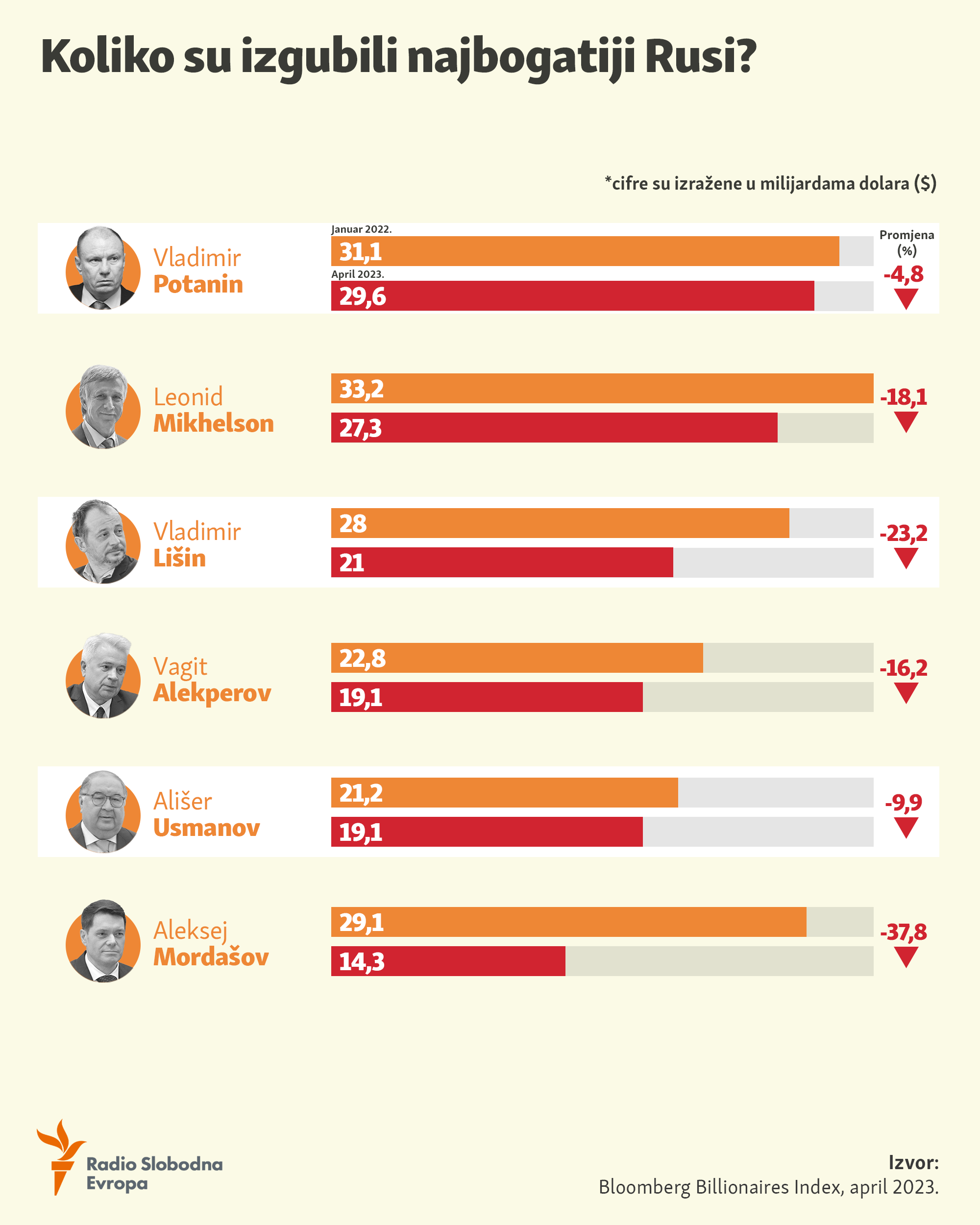 Kako se kapital najbogatijih ruskih milijardera na promijenio od januara 2022. do danas? Ko je najviše izgubio, a ko je zaradio?