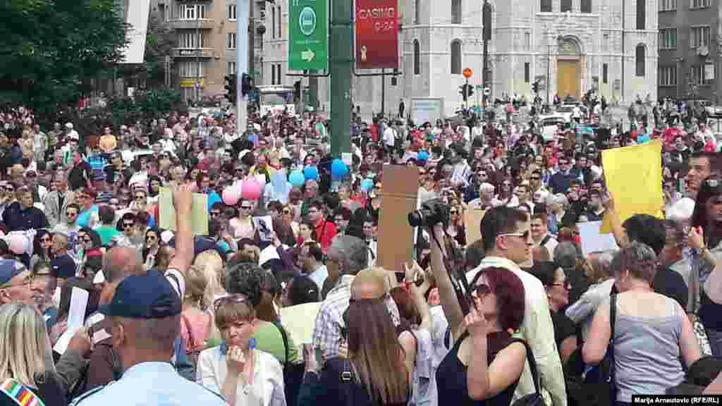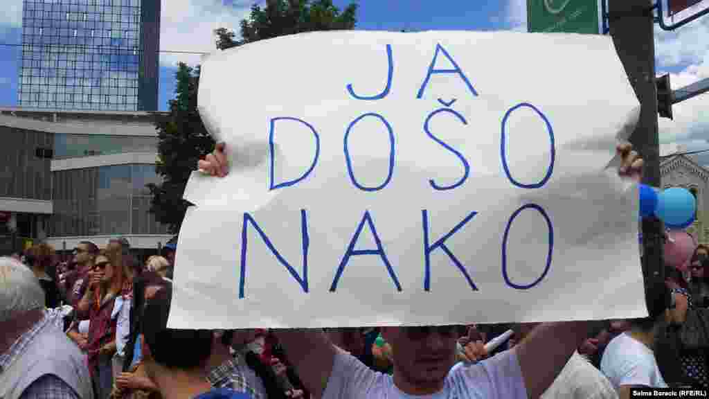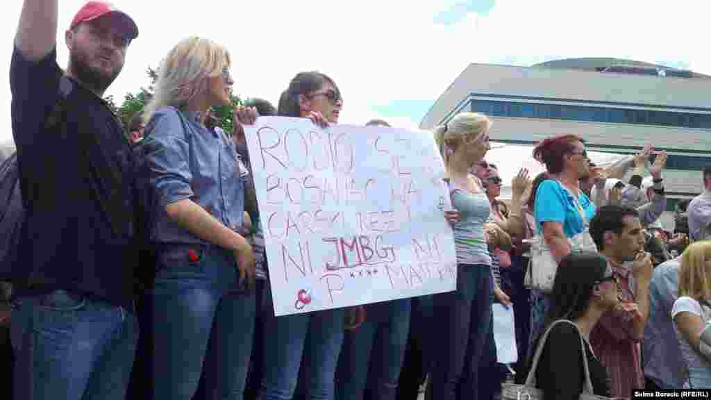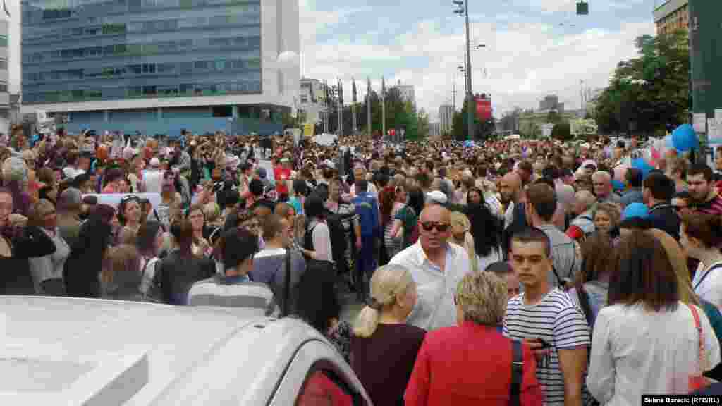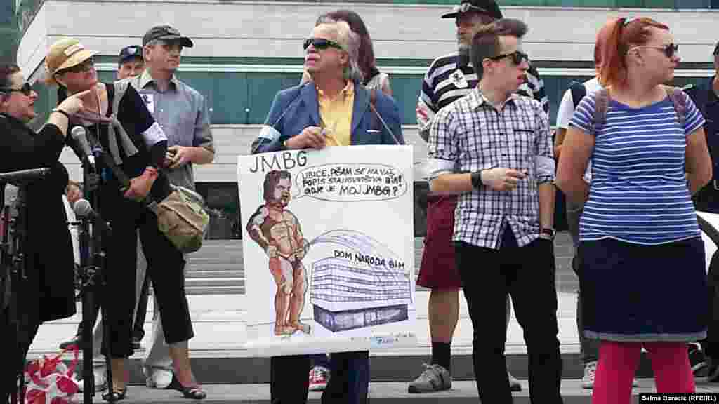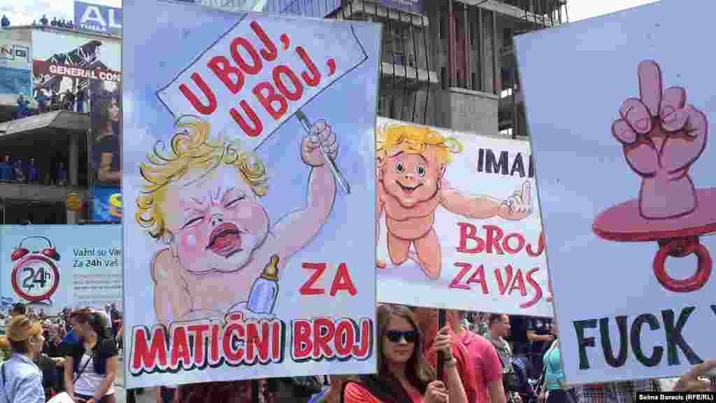 Veliki protest u Sarajevu ispred zgrade Parlamenta BiH na kojem se skupilo nekoliko hiljada građana koji traže hitno usvajanje Zakona o jedinstvenom matičnom broju građana. Foto: RSE / Selma Boračić, 11. juni 2013.