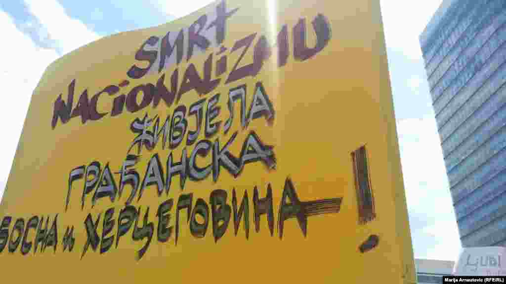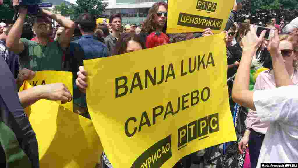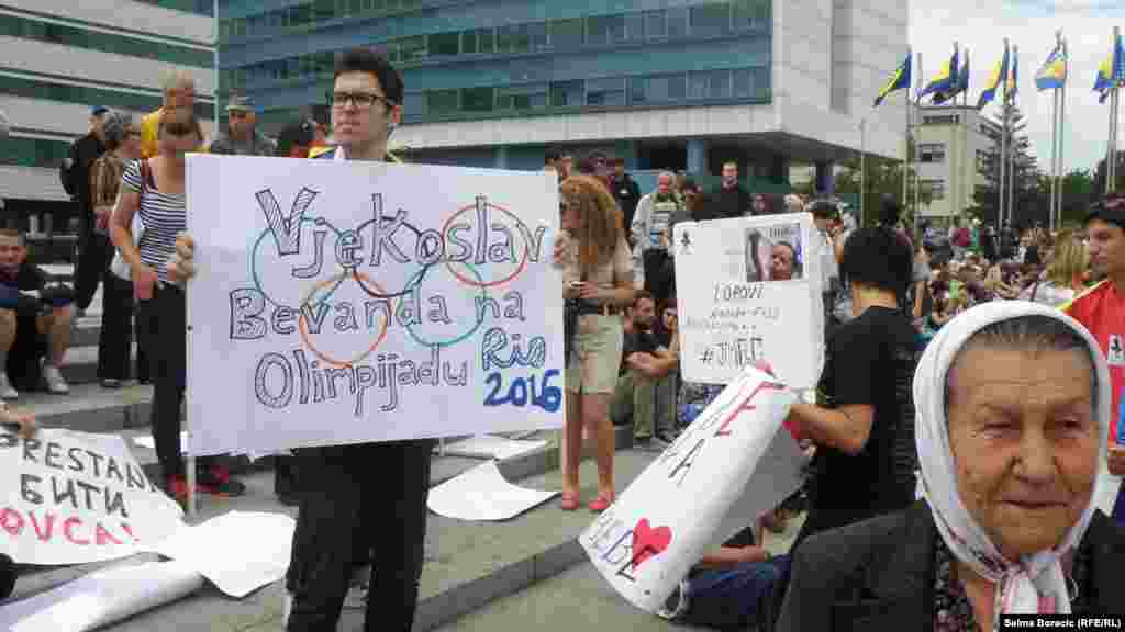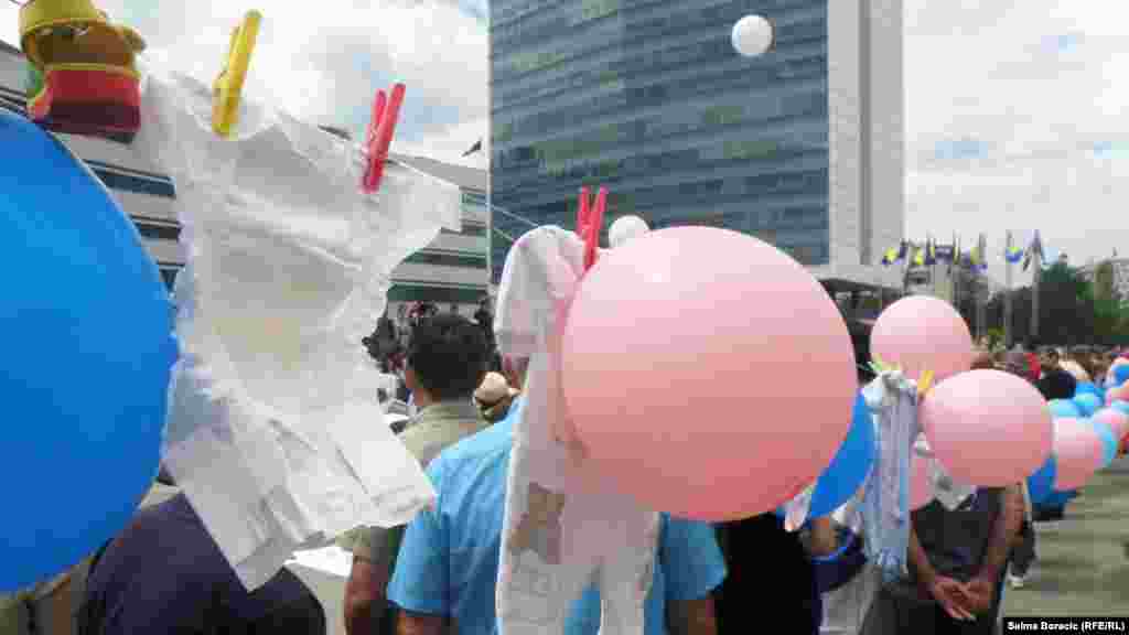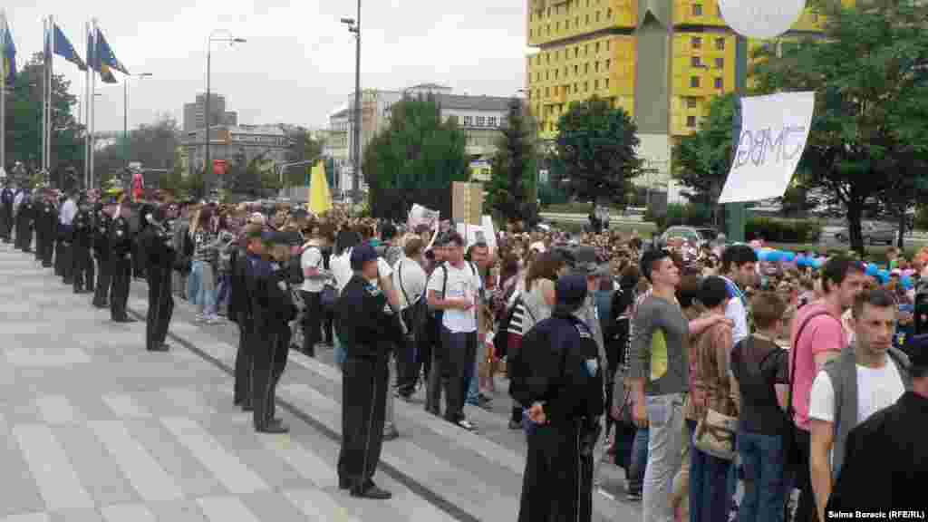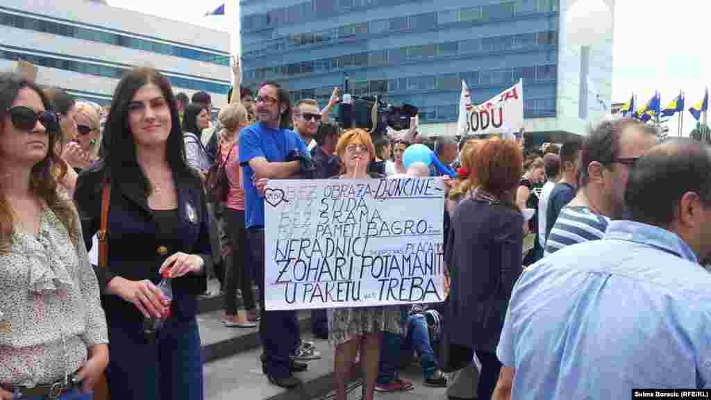 Veliki protest u Sarajevu ispred zgrade Parlamenta BiH na kojem se skupilo nekoliko hiljada građana koji traže hitno usvajanje Zakona o jedinstvenom matičnom broju građana. Foto: RSE / Selma Boračić, 11. juni 2013.