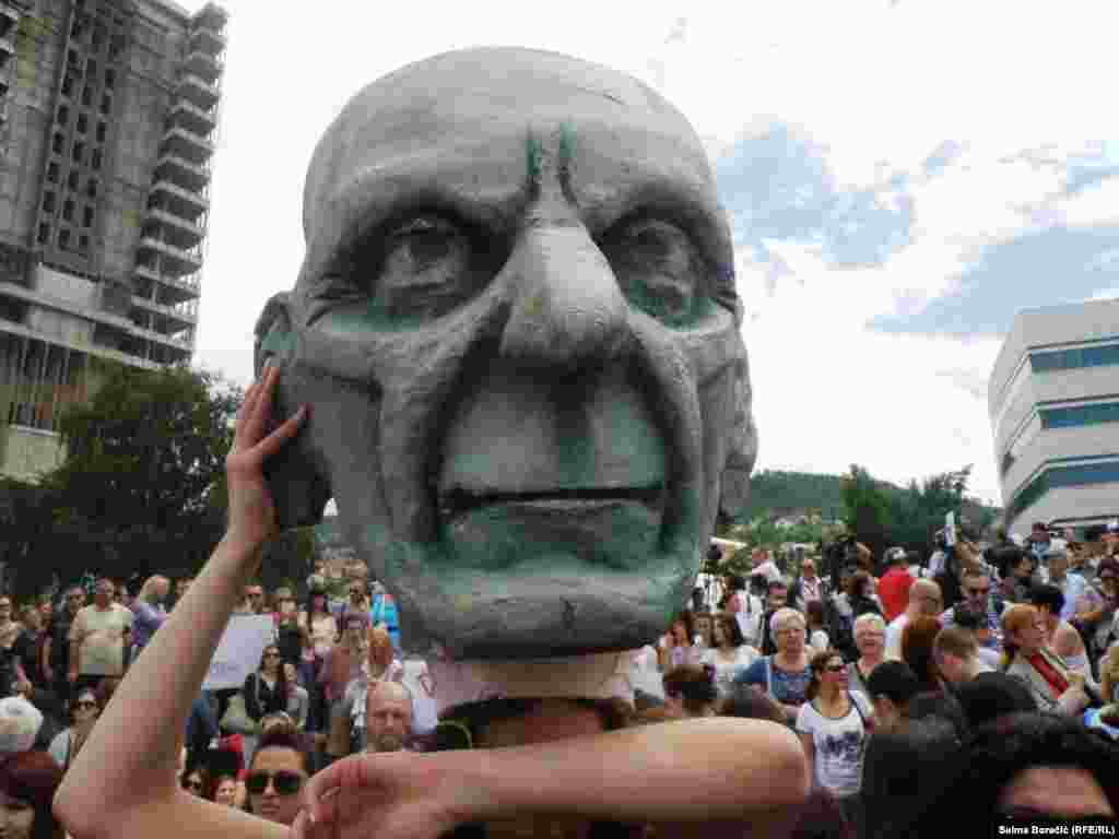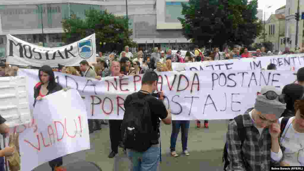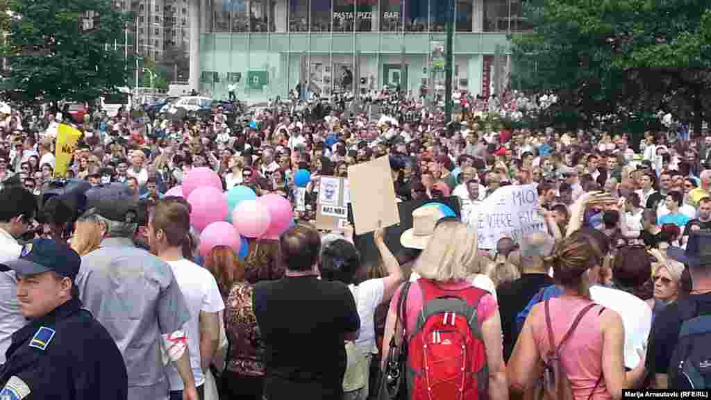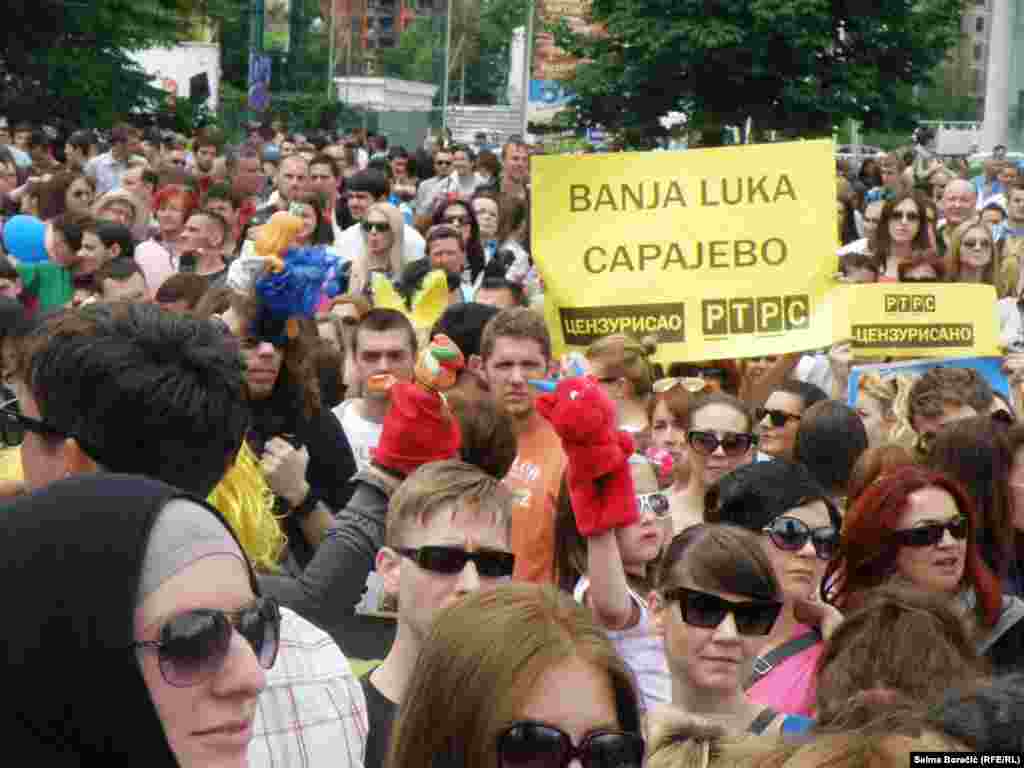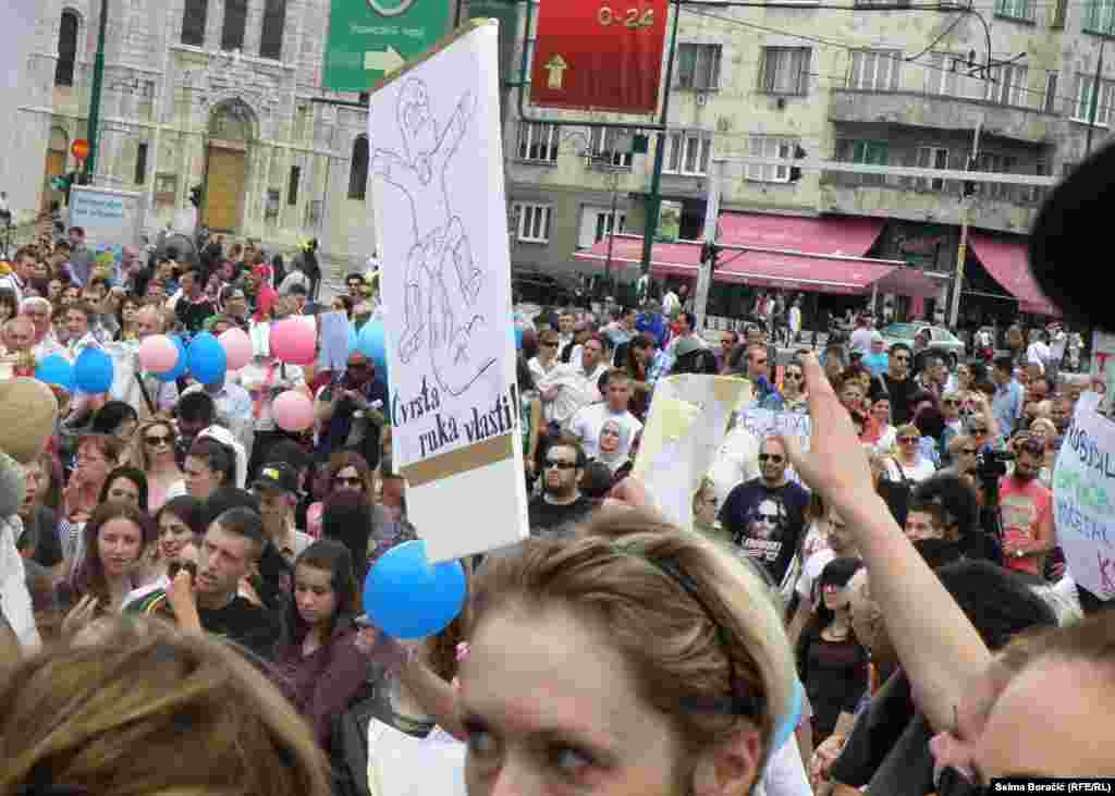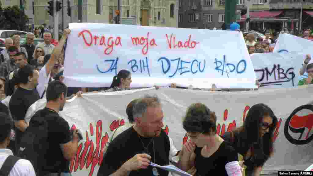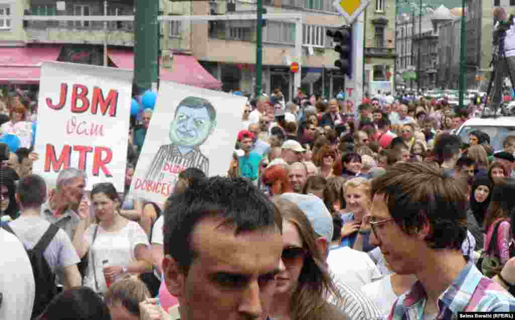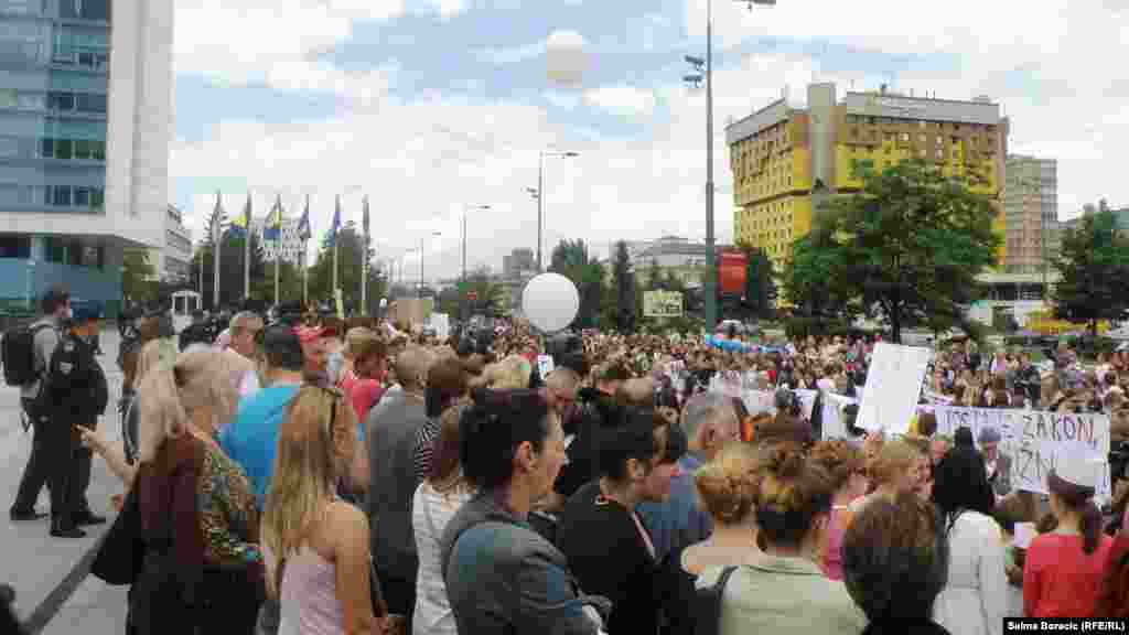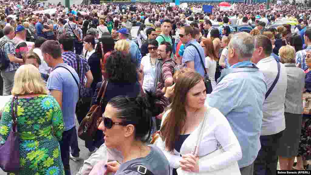 Veliki protest u Sarajevu ispred zgrade Parlamenta BiH na kojem se skupilo nekoliko hiljada građana koji traže hitno usvajanje Zakona o jedinstvenom matičnom broju građana. Foto: RSE / Selma Boračić, 11. juni 2013.
