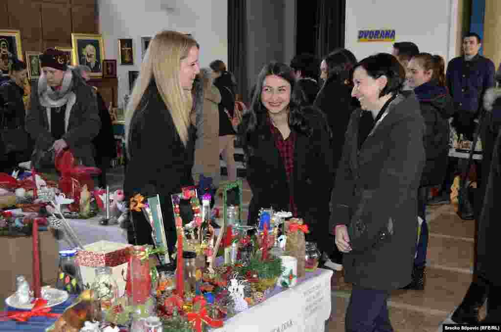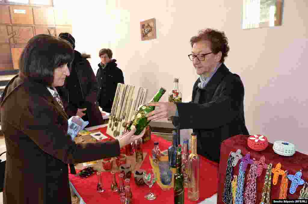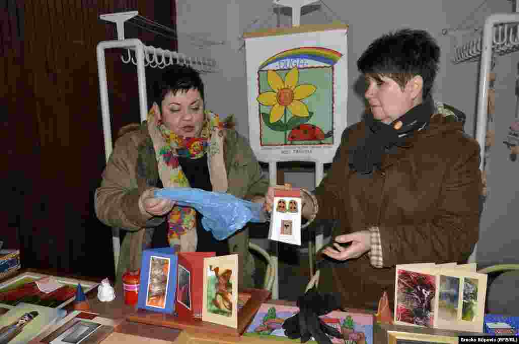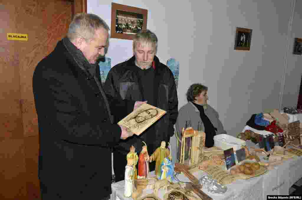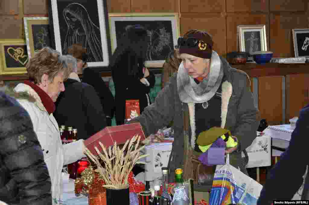 Na Božićnom sajmu u Novom Travniku učestvuju udruge građana i pojedinci koji se bave izradom suvenira, pletenjem, zlatovezom ili umjetničkim rezbarenjem. Većina udruženja građana proizvode prodaje a novac će usmjeriti u humanitarne svrhe. 18.12.2014. RSE foto / Srećko Stipović