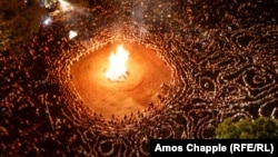 Hiljade ljudi držalo se za ruke i plesalo tradicionalne plesove sve do nešto iza 22 sata, kada je bakljadio odala počast onima koji su kroz povijest umrli za Bugarsku. Baklje su zatim, jednu po jednu, bacane na lomaču.