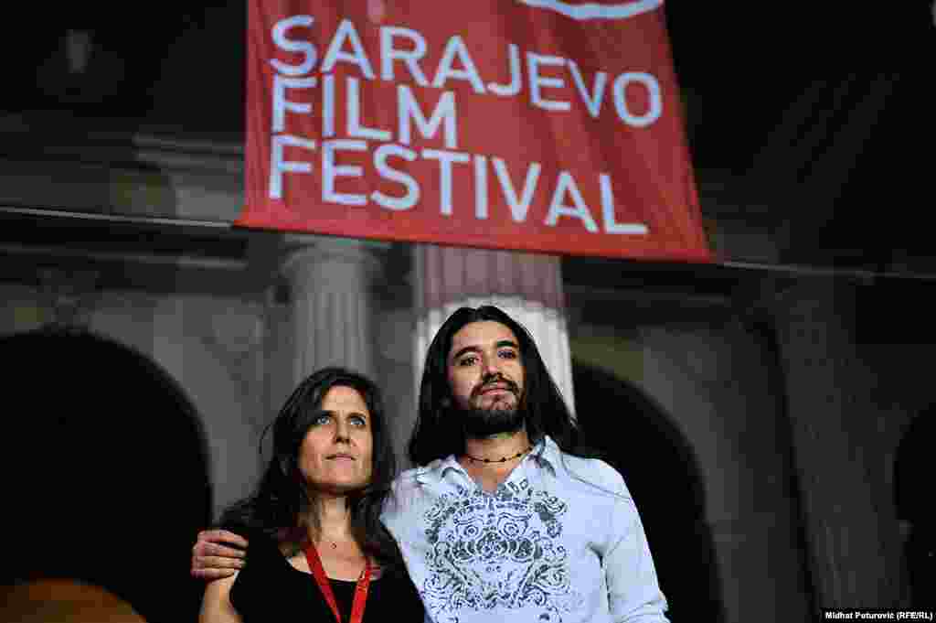 Crvenim tepihom ispred Narodnog pozorišta Sarajevo i četvrte noći 20. SFF prodefilirali su mnogi filmski profesionalci, a među njima ekipa filma "Macondo", te francuski režiser i glumica Michel Hazanavicius i Bérénice Bejo. RSE/Foto: Midhat Poturović