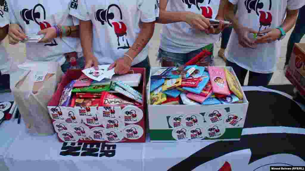 “Čokoladni neredi” ili “Čokolucija” održani su u petak uveče u nekoliko gradova BiH i regije, kao znak da se mladi i ostali građani različite etničke pripadnosti ili socijalnog statusa mogu susresti i na miran, civiliziran način razgovarati. Istovremeno, ove godine cilj “Čokoladnih nereda” bio je i skupiti čokolade za djecu sa područja koje su prije par mjeseci pogodile katastrofalne poplave. FOTO/RFE: Mirsad Behram