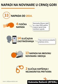 Bavljenje istraživačkim novinarstvom u Crnoj Gori, sa druge strane, dodatno otežava to što je državni parlament prošle godine ekspresno, bez prisustva opozicije, usvojio izmjene Zakona o slobodnom pristupu informacijama, koje sužavaju mogućnost novinarima da dođu do neophodnih podataka koje smatraju značajnim za javnost.