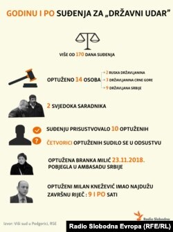 Inače, Apelacioni sud je 5. februara ove godine ukinuo presudu Višeg suda iz maja 2020, kojom je 13 optuženih, među kojima su i dva ruska državljanina, Eduard Šišmakov i Vladimir Popov, osuđeni ukupno na oko 70 godina zatvora. Postupak je vraćen na ponovno suđenje Višem sudu u Podgorici, ali pred izmijenjenim sudskim vijećem.