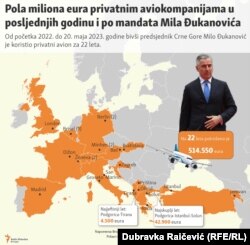 Više od pola miliona eura koštala su putovanja privatnim avionima Mila Đukanovića u posljednjih godinu i po predsjedničkog mandata.