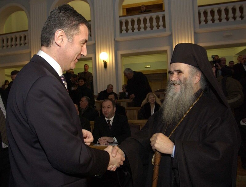 Mitropolit Crnogorsko primorski Amfilohije (desno) i lider DPS Milo Đukanović - fotografija iz arhive