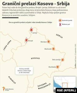 Barikade su postavili lokalni Srbi, a njima su blokirane ceste koje vode prema dva granična prijelaza, Jarinju i Brnjaku koji povezuju Kosovo sa Srbijom.