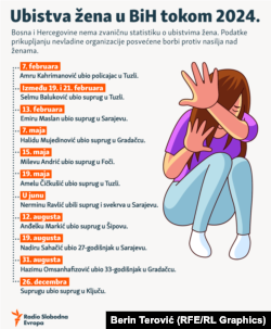 U Brodu, na sjeveru Bosne i Hercegovine, uhapšen je muškarac za kojeg se sumnja da je iz vatrenog oružja ubio suprugu, saopšteno je u nedjelju iz Policijske uprave Doboj. Na području BiH protekle sedmice zabilježena su dva ubistva žena. Na području Ključa je 27. decembra ubijena žena iz vatrenog oružja. Ubistva žena su sve brutalnija, a vlasti u Bosni i Hercegovini, iako obećavaju podršku žrtvama nasilja, odbijaju u zakone uvrstiti femicid kao posebno krivično djelo.