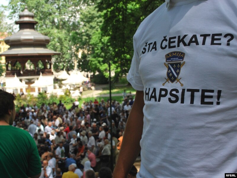 Sa protesta 27. maja u Sarajevu, u bivšoj Dobrovoljačkoj ulici, na kojim je izraženo neslaganje zbog optužbi na račun branilaca Sarajeva, Foto: Midhat Poturović