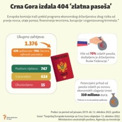Crna Gora izdala 404 'zlatna pasoša'