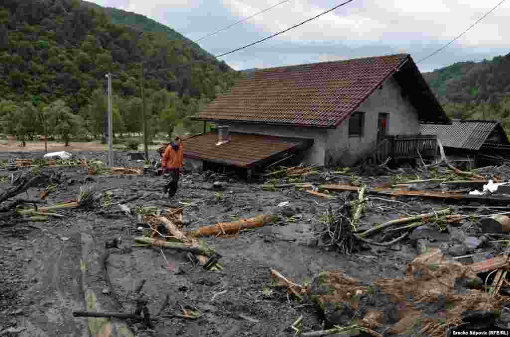 Više stotina mještana ovih naselja u Zeničko-dobojskom kantonu i u subotu napuštaju kuće jer nisu sigurni u njima. Među njima je i Agan Karahasanović koji je, uz pomoć bagera, uspio svoju obitelj evakuirati na vrijeme. Neke kuće je uništila poplava, a druge klizišta. Sa magistralnog puta Zenica - Žepče još uvijek se uklanjaju prepreke nastale klizanjem zemlje. RSE/Foto: Srećko Stipović