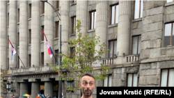 Reporterka RSE javila je da je četvoro, petoro osoba sa crkvenim obeležjima na kratko upalo u prostor obezbeđen za učenike Evroprajd šetnje u Bulevru kralja Aleksandra i pevalo nacionalističke pesme.