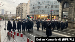 Na uglu ulica Kneza Miloša i kralja Milana prisutne su jake policijske snage. Policija je u ulici Kneza Miloša postavila žičanu ogradu.