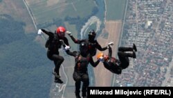 Na sportskom aerodromu u Zalužanima pored Banjaluke u toku je Evropsko padobransko prvenstvo i Svjetski kup u padobranstvu. U narednih sedam dana u grupnim relativ skokovima i artističkim disciplinama snage će odmjeriti 280 najboljih padobranaca iz 20 zemalja svijeta.