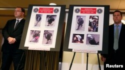 Na fotografijama su dvojica muškaraca sa kačketima na glavi i rančevima na leđima, a na snimku koje su zabeležile bezbednosne kamere, vidi se kako jedan od njih ostavlja ranac na mestu gde se dogodila eksplozija, nakon čega odlazi.