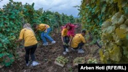Nekoliko kapi kiše nije moglo sprečiti Deu da učestvuje. "Došla sam jer mi se jako dopala organizacija i zato što mi u opštini Orahovac imamo vinogradarsku tradiciju", rekla je Dea, članica pobedničkog tima, za Radio Slobodna Evropa.