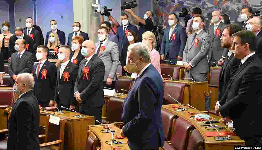 Konstitutivna sjednica crnogorskog parlamenta počela je intoniranjem državne himne, a ovom činu nije prisustvovao dio poslanika Demokratskog fronta, dok je nosilac liste „Za budućnost Crne Gore“ Zdravko Krivokapić s ostalim prisutnim poslanicima i gostima ispoštovao državnu himnu.