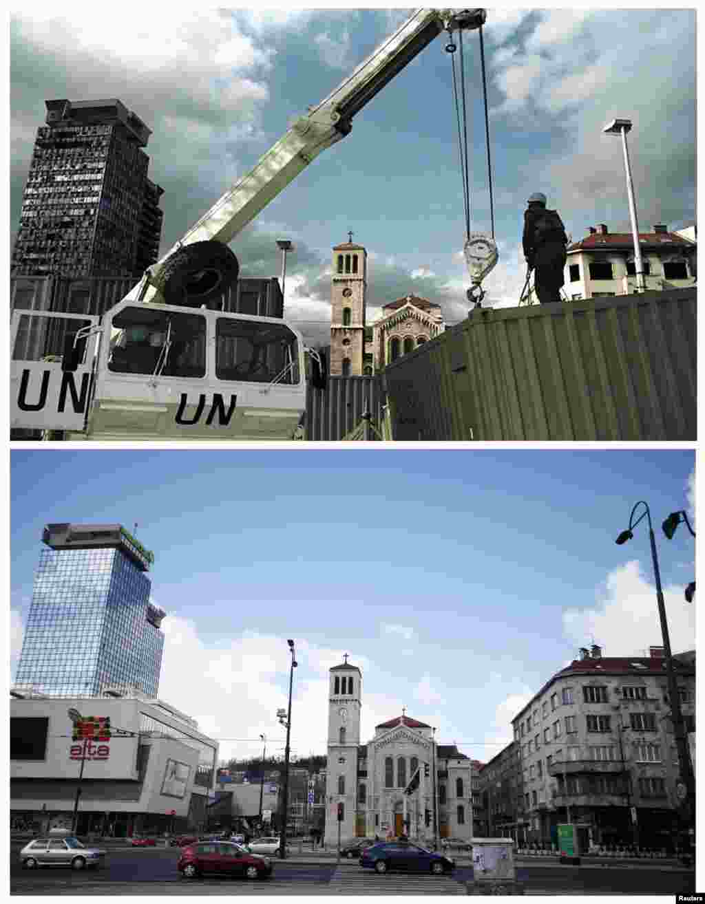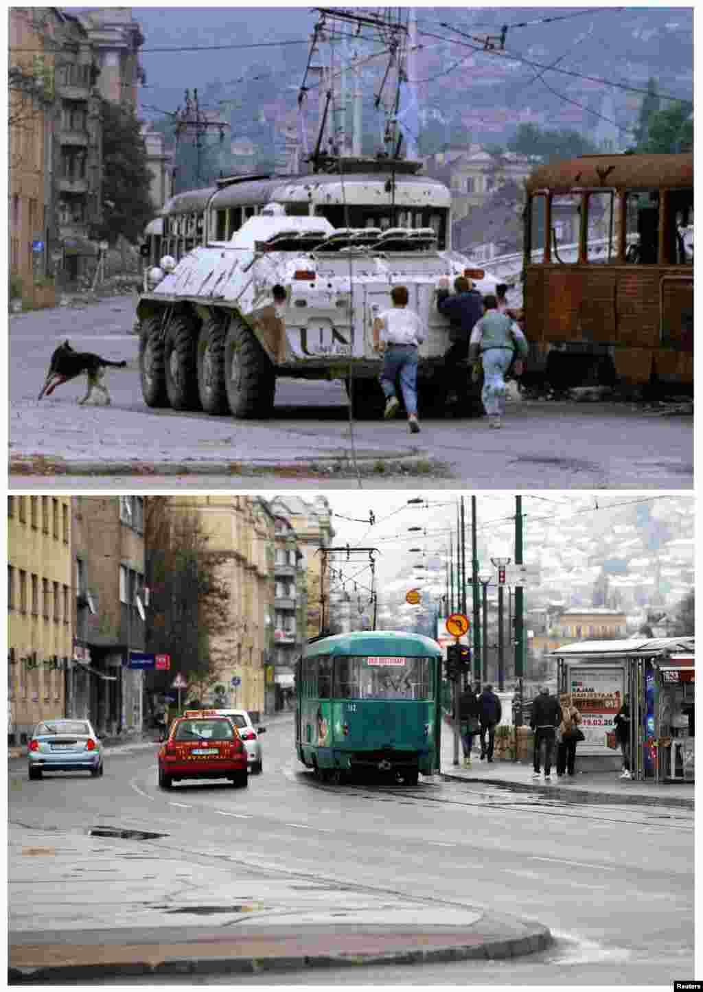 Opsada Sarajeva bila je to najduža opsada nekog glavnog grada u modernoj istoriji. Trajala je 1.425 dana poginulo je oko 11.541 osoba. Pogledajte kako je Sarajevo u vrijeme rata, a kako godinama kasnije u mirondopskim uslovima, kroz objektiv fotoreportera RSE Midhada Poturovića i Dade Ruvića (Reuters).