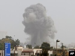 Oblak dima i prašine od eksplozije se diže u nebo, nakon vazdušnih napada NATO na Tripoli, 07. jun 2011.