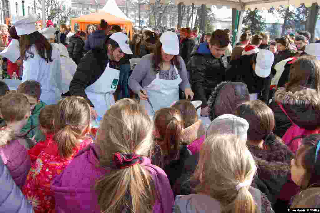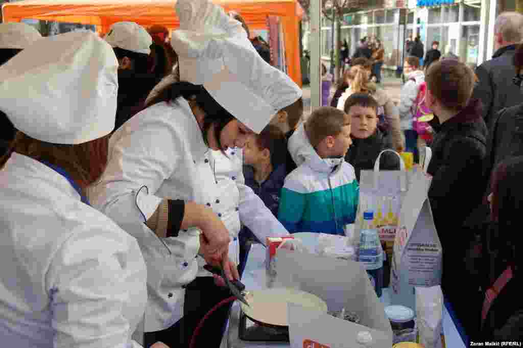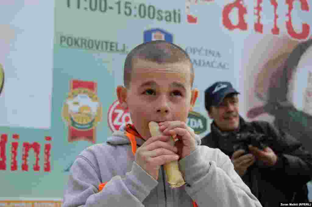 Povodom Međunarodnog dana palačinaka u Gradačcu je održan treći po redu Festival ''Gastro provincija u pozadini''. Tim povodom pripremljeno je i podijeljeno oko 4000 palačinaka. Restorani, škole i medijske kuće iz BiH natjecali su se u pripremi najukusnijeg palačinka a najmlađi u brzom jedenju ove slastice. 17.2.2015. RSE foto/Zoran Matkić