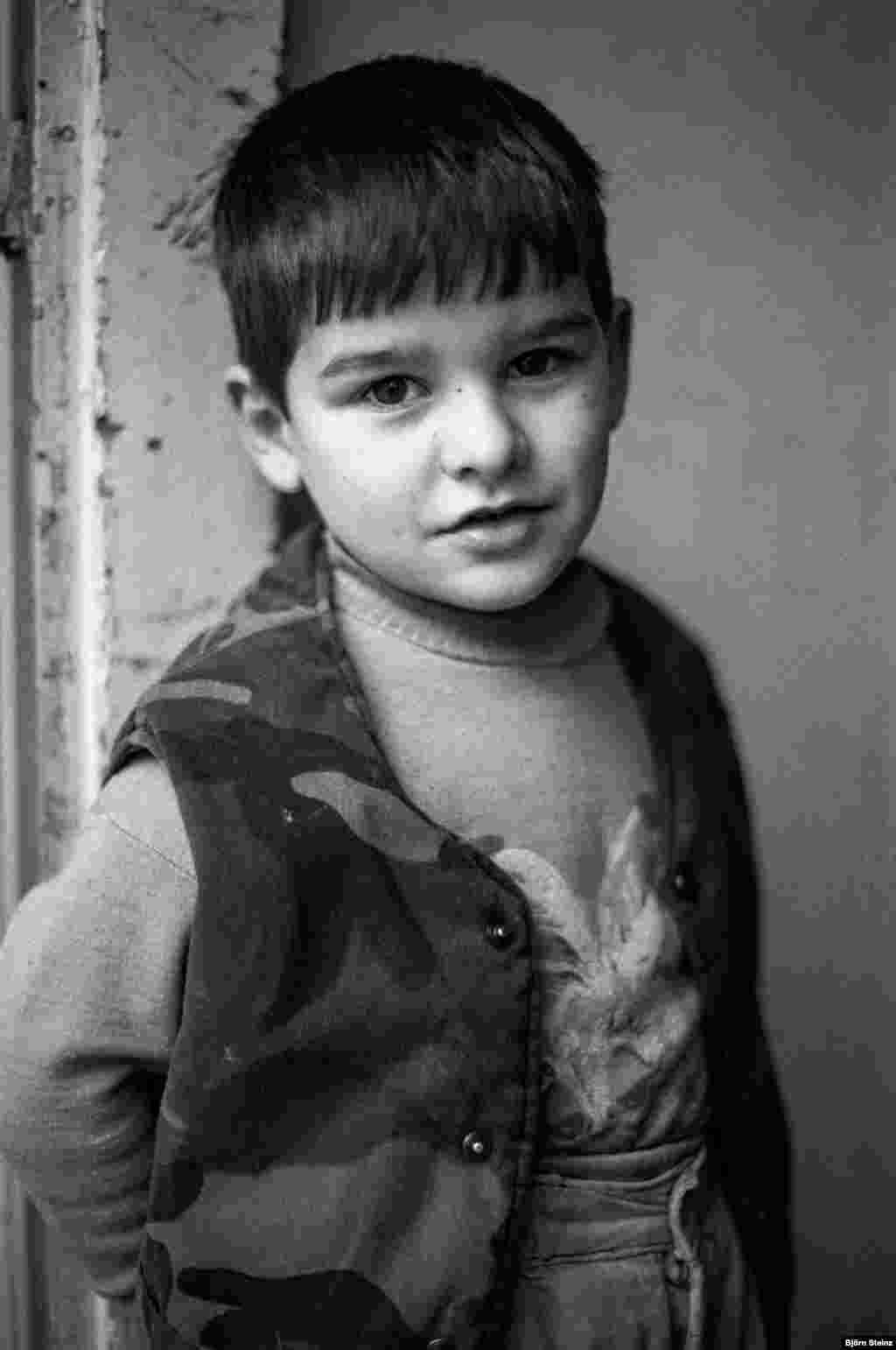 Portret dječaka izbjeglice iz Bosne i Hercegovine u izbjegličkom kampu u Varaždinu, Hrvatska, u zimu 1992. godine.
