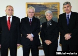 Predsjednik HZZ 1990 Božo Ljubić, predsjednik Hrvatske Ivo Josipović, premijerka Hrvatske Jadranka Kosor i predsjednik HDZBiH Dragan Čović tijekom susreta u Zagrebu, 12. januara 2011